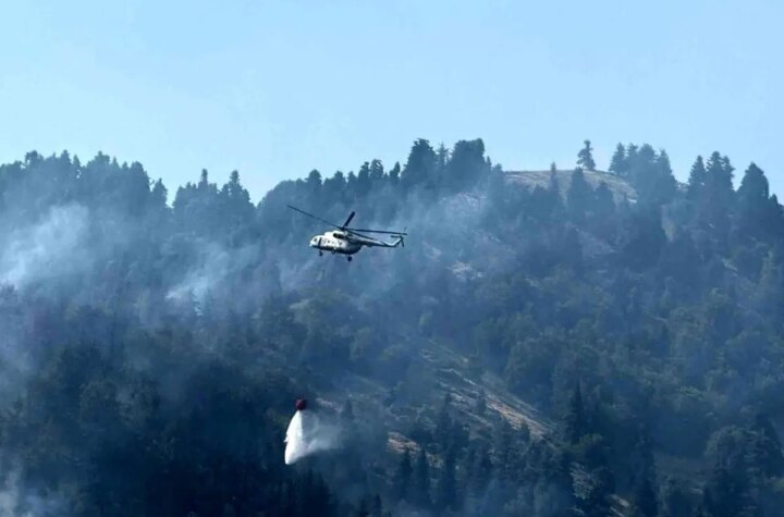 Osmaniye'nin Düziçi ilçesinde başlayan orman yangını, havadan helikopterler ve karadan arazözlerle müdahale edilerek söndürülmeye...